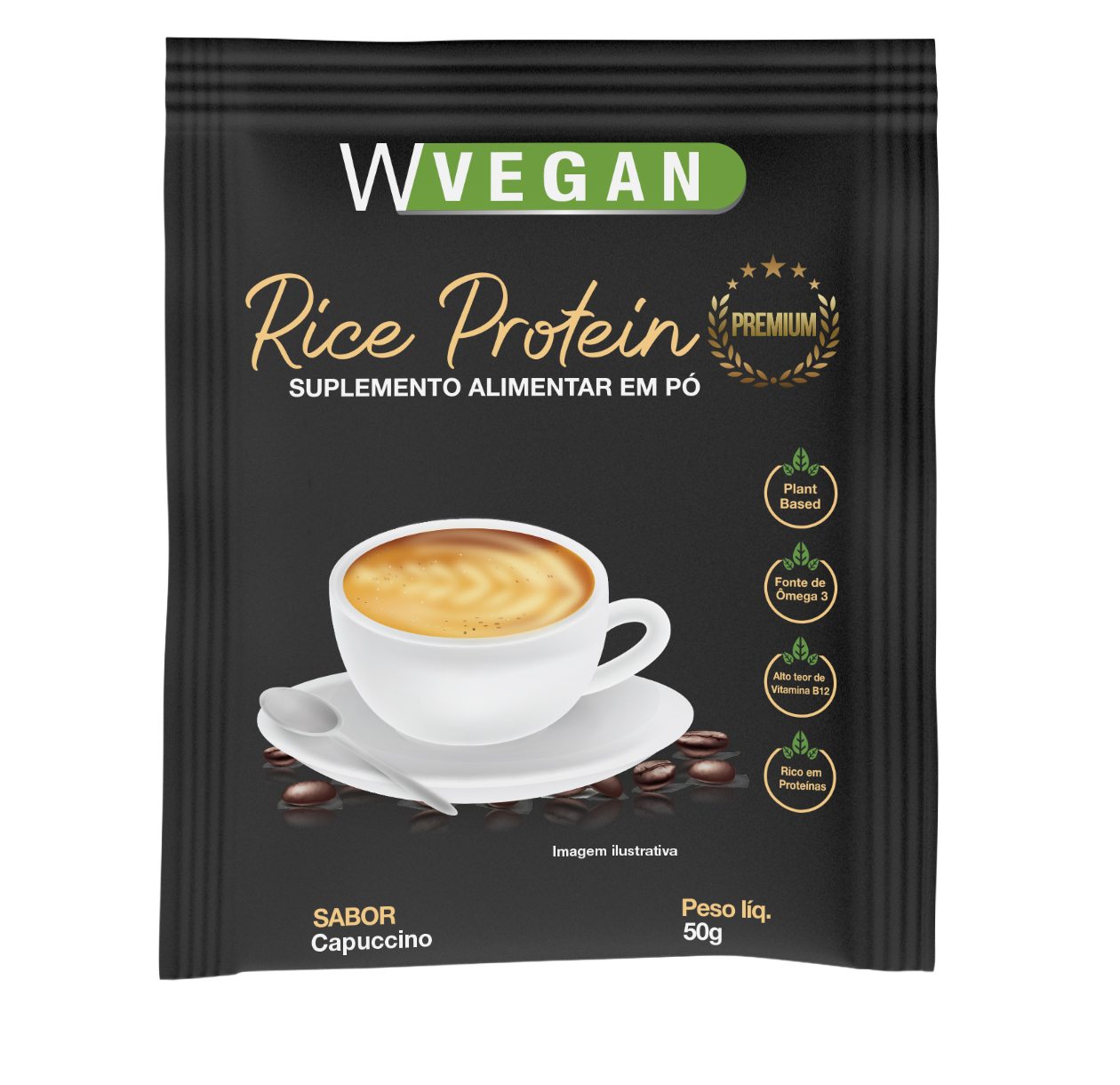 7 Saches Rice Protein Premium 50g (Abacaxi com Hortelã, Banana com Açaí, Capuccino, cocada, paçoca, brownie e Vitamina de Frutas);