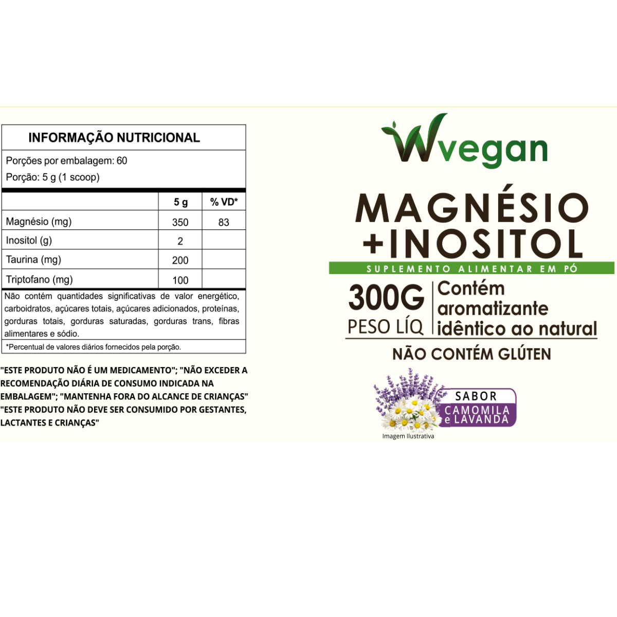 Magnesio com Inositol 300g Sabores Uva ou Camomila com Lavanda WVegan