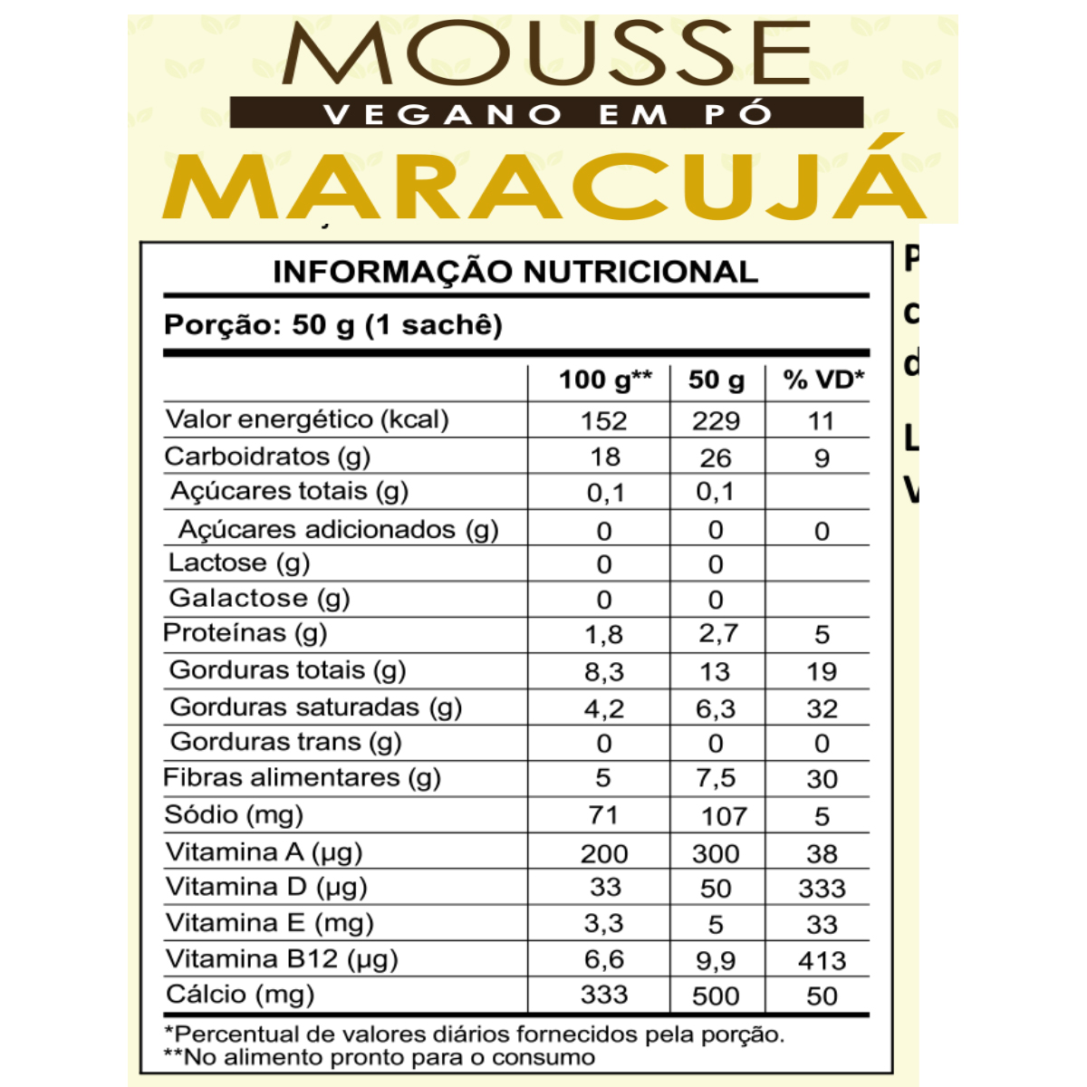 Mousse de Maracujá Vegano em Pó 50g WVegan