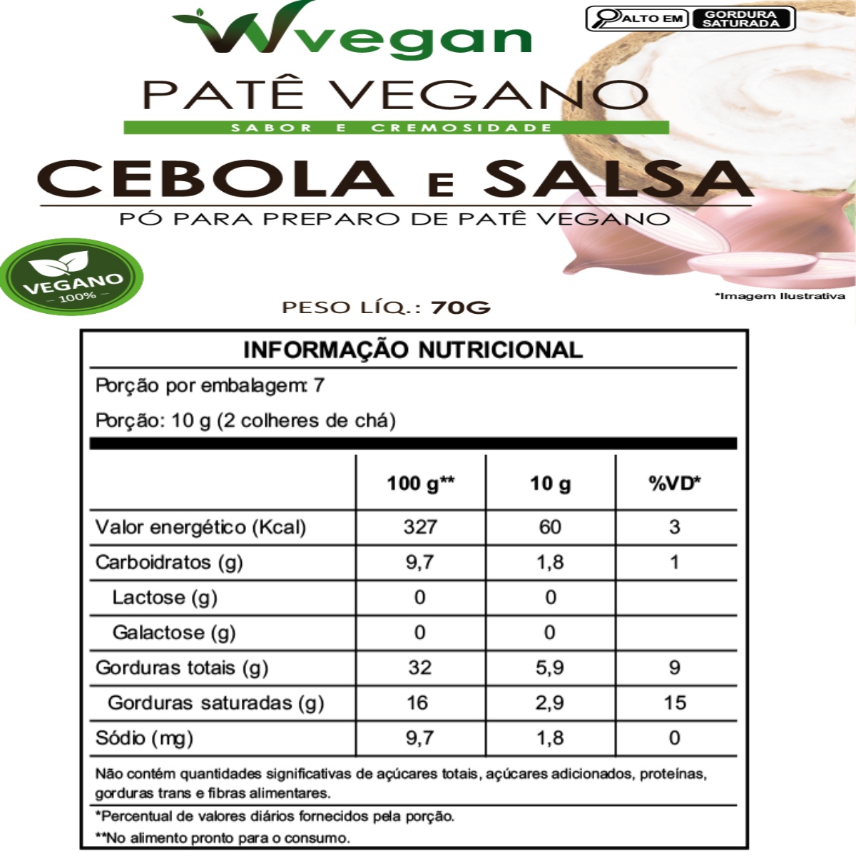 O Patê 70g Vegano WVegan sabores é a opção perfeita para quem busca praticidade, sabor e uma alimentação 100% vegetal. Feito em pó para preparo instantâneo, basta misturar com água quente para ter um patê cremoso, leve e delicioso, pronto para acompanhar torradas, pães, wraps e lanches.